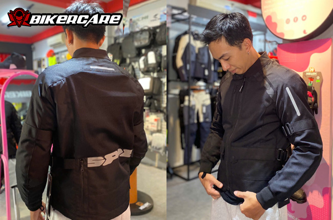 Áo trang bị sẵn tấm phản quang 3M® Scotchlite® giúp an toàn hơn vào ban đêm, ngoài ra mặt sau áo có dây kéo kết nối áo và quần Spidi với nhau để tăng thêm độ an toàn.