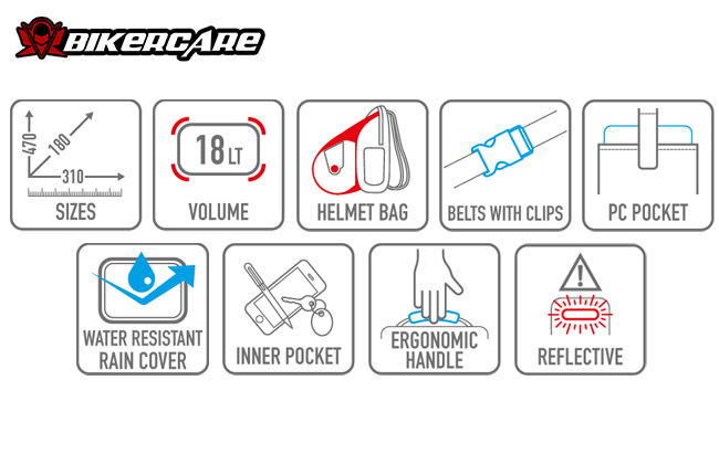 - Ngăn chứa mũ bảo hiểm tháo rời thông minh - Túi lưới đặt ở đáy balo