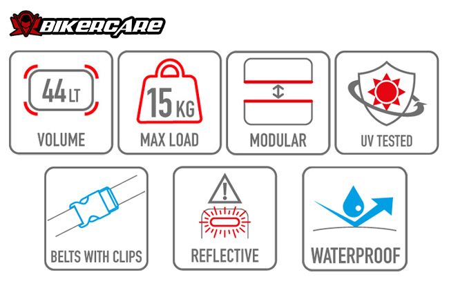- 2 túi hông chống nước dung tích 16L mỗi bên - 1 túi phía sau dung tích 12L