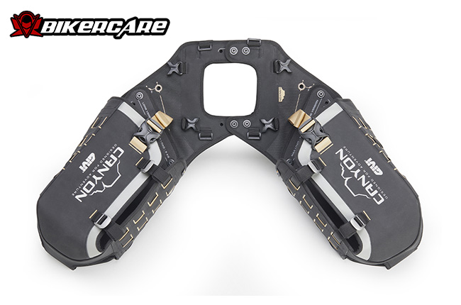 Givi GRT721B là hệ thống túi hành lý dạng “móng ngựa” (horseshoe) cao cấp, được thiết kế dành riêng cho các dòng xe enduro và maxi enduro. Với cấu trúc thông minh không cần baga khung, sản phẩm mang lại độ linh hoạt tối đa, giảm trọng lượng xe và vẫn đảm bảo độ chắc chắn khi di chuyển trên địa hình phức tạp.