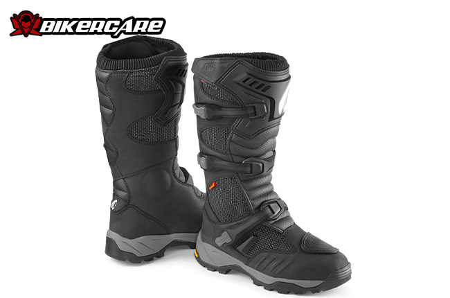 Về an toàn, giày được trang bị bảo vệ mắt cá D3O® Malleolus, giúp hấp thụ xung lực hiệu quả khi va chạm. Thanh thép Steel Shank bên trong đế tăng độ ổn định và chống xoắn, hỗ trợ tốt khi đứng lái hoặc đi địa hình. Ốp ống quyển ép khuôn (Injection-molded shin plate), gót và mũi giày gia cố giúp tăng khả năng bảo vệ ở các vị trí trọng yếu.