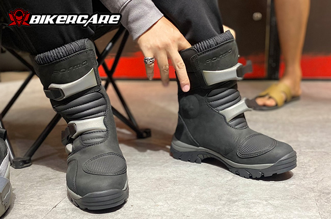 Trên thân giày có hai đai cài có thể tăng chỉnh độ dài phù hợp giúp cố định phần cổ chân và ống khuyển. Theo đó, cổ chân không bị lệch và trợ lực khi chống đở xe, hộ trợ người dùng nhanh chóng tăng chỉnh kích thước ống giày sao cho phù hợp nhất và nhanh nhất.