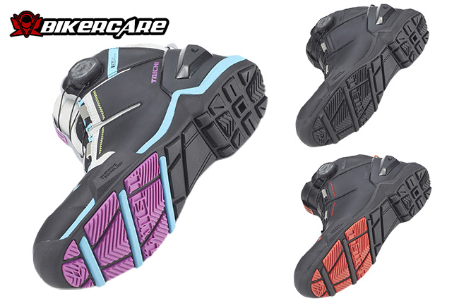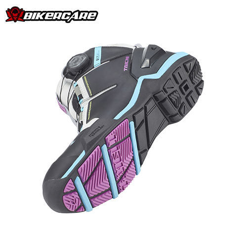 Đế giày được thiết kế với rãnh chống trượt, giúp tăng độ bám ngay cả khi mặt đường ướt. Phần tiếp xúc với cần số được cắt góc đặc biệt, giúp thao tác sang số mượt mà và chính xác hơn.