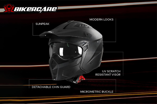 - Kính chắn gió nửa mặt chống trầy xước, chống tia UV, mang lại tầm nhìn rõ nét và bảo vệ mắt khỏi bụi, gió và ánh nắng.