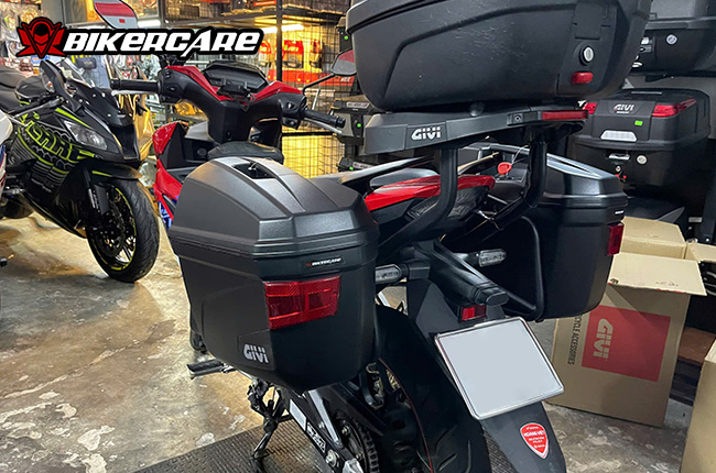 Bikercare shop hỗ trợ lắp đặt miễn phí cho thùng hông Givi E22N tại 216-218 Phó Cơ Điều, P6, Q11.