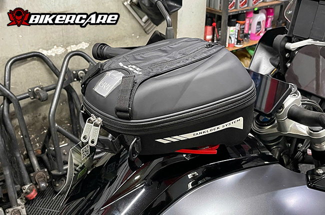 Túi sử dụng cơ chế Tanklock, cho phép gài vào mặt bình xăng có sẵn bộ ring chuyên dụng (phải chọn đúng mã phù hợp với từng xe) một cách nhanh chóng và ổn định, thao tác chỉ trong vài giây — không cần dây đai hay phụ kiện rắc rối.