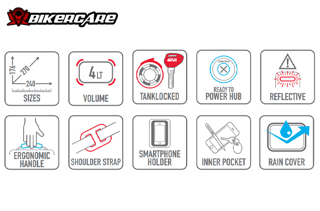 Túi bình xăng Givi ST602B là túi gắn bình xăng dạng tanklock tiện dụng dành cho các biker cần để các vật dụng cần thiết như kính râm, điện thoại, ví hay giấy tờ.