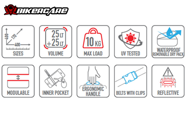 Được thiết kế đặc biệt cho các hành trình off-road và adventure touring, Givi GRT720B Monokey là bộ túi hông mềm chống nước, mỗi bên có dung tích 25 L, tổng cộng 50 L — phù hợp hoàn hảo cho những chuyến đi dài ngày.
