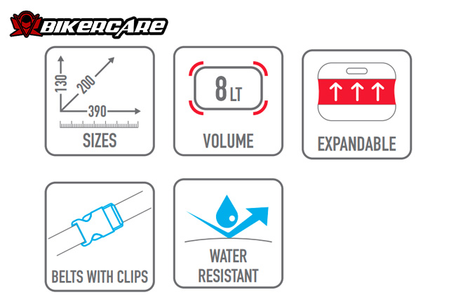 Dung tích mở rộng 8 lít, lý tưởng để chứa áo mưa, đồ ướt hoặc vật dụng bố sung khi cần.