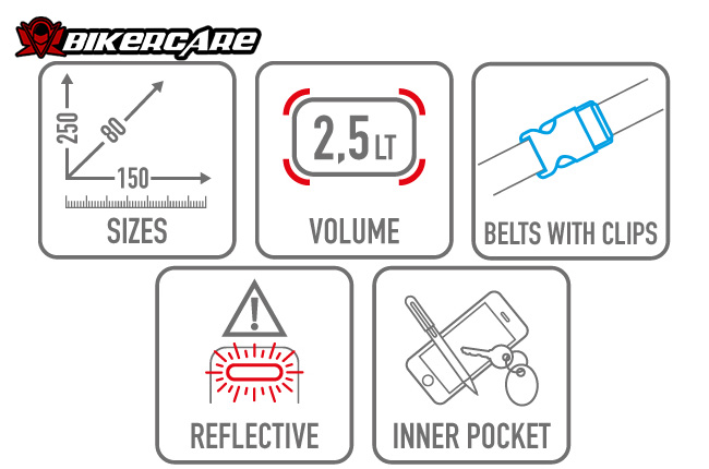 - Thiết kế nhỏ gọn – dung tích 2.5L - Tối ưu không gian mang theo các vật dụng quan trọng mà không gây cồng kềnh.