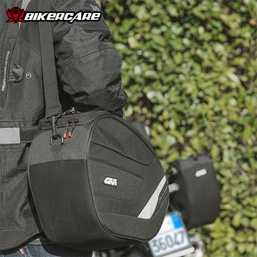 Givi EASY12R (phải) là dòng túi hông đơn (single side bag) phù hợp cho các dòng xe naked và sport sử dụng khung Stealth. Nổi bậc nhờ là khả năng tháo lắp nhanh cùng thiết kế khung ẩn, giúp giữ nguyên thẩm mỹ của xe khi không gắn túi.