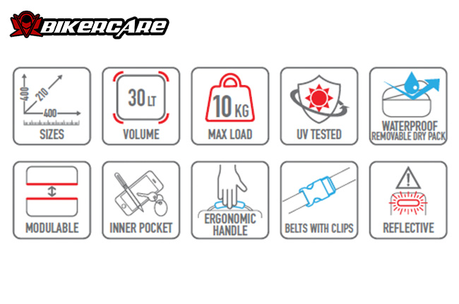 GRT725 được tích hợp hệ thống cố định MONOKEY® CAM-SIDE, giúp túi gắn chắc vào giá pannier dạng ống (PL_CAM) phổ biến trên thị trường — rất phù hợp với các dòng enduro và maxi enduro xe phân khối lớn.