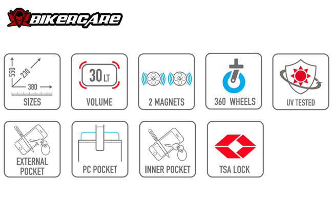 Givi TR14 LCR là chiếc vali kéo mềm dung tích 30 lít, thuộc bộ sưu tập đặc biệt LCR (Luca Cordero di Montezemolo Racing).