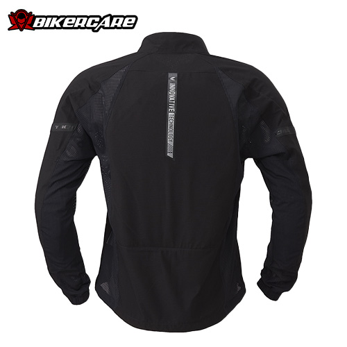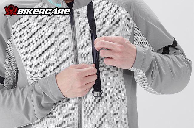 Có thể gắn thêm giáp ngực (chest protector – tùy chọn) thông qua hệ thống nút gắn bên trong áo. Các vị trí vai, khuỷu tay và lưng có thể nâng cấp lên protector chuẩn CE Level 2 (tùy chọn) để tăng khả năng bảo vệ khi chạy tốc độ cao hoặc đi tour đường dài.