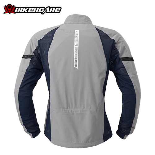Có thể gắn thêm giáp ngực (chest protector – tùy chọn) thông qua hệ thống nút gắn bên trong áo. Các vị trí vai, khuỷu tay và lưng có thể nâng cấp lên protector chuẩn CE Level 2 (tùy chọn) để tăng khả năng bảo vệ khi chạy tốc độ cao hoặc đi tour đường dài.