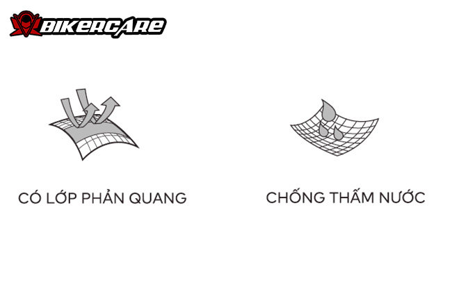 - Dải phản quang an toàn: Logo và chi tiết phản quang giúp tăng khả năng nhận diện trong điều kiện thiếu sáng, đảm bảo an toàn khi di chuyển ban đêm.