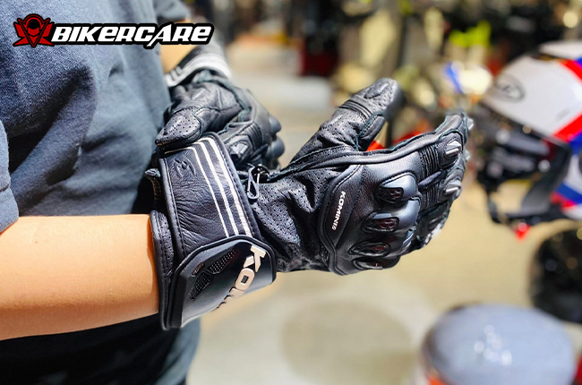 Thêm vào đó, thiết kế bảo vệ các đốt ngón tay và phần may liền ngón út giúp tăng độ an toàn. Phần da nhún xung quanh gù để tăng độ linh hoạt cho người đeo.
