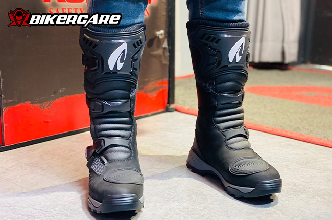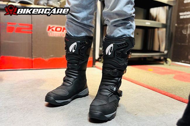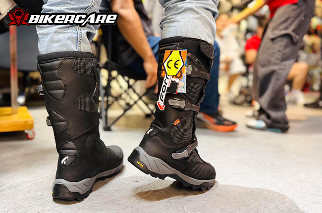 Về an toàn, giày được trang bị bảo vệ mắt cá D3O® Malleolus, giúp hấp thụ xung lực hiệu quả khi va chạm. Thanh thép Steel Shank bên trong đế tăng độ ổn định và chống xoắn, hỗ trợ tốt khi đứng lái hoặc đi địa hình. Ốp ống quyển ép khuôn (Injection-molded shin plate), gót và mũi giày gia cố giúp tăng khả năng bảo vệ ở các vị trí trọng yếu.