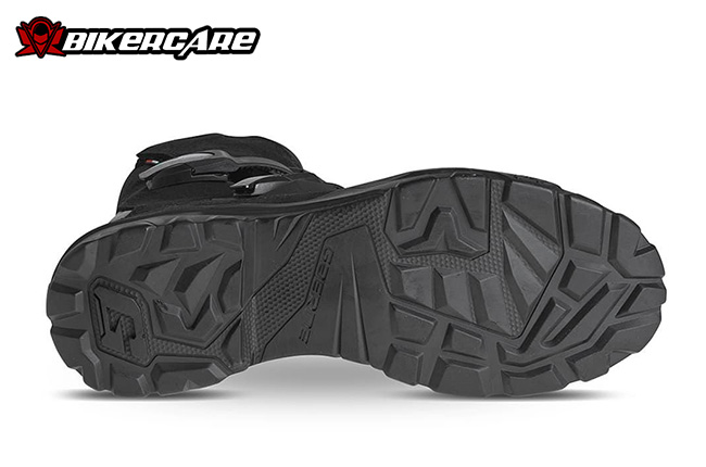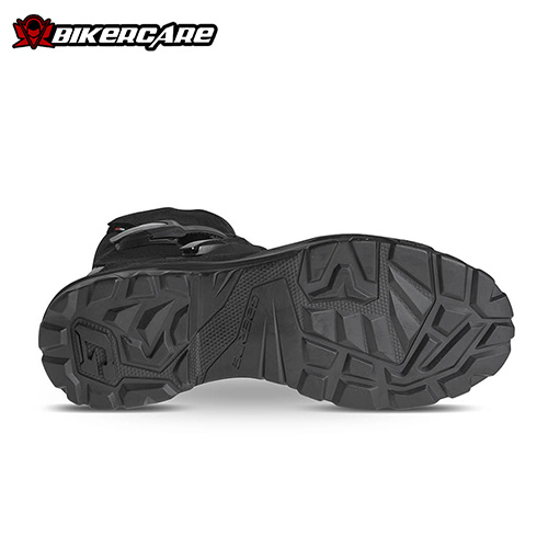 Đế cao su lưu hóa độc quyền được thiết kế với các vùng bám riêng biệt giúp tăng cường lực bám đường và độ ổn định trên nhiều địa hình khác nhau, đảm bảo sự tự tin khi di chuyển trên mọi bề mặt, từ đường nhựa đến đường đất.