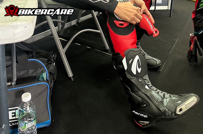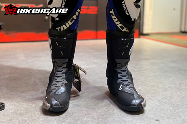 - Đôi giày trang bị 3 thanh trượt titanium (titanium sliders) ở mũi chân, hông và gót chân tương tự giày đua MotoGP chuyên dụng - giúp bảo vệ khi tiếp đất hoặc mài góc cua tốc độ cao.