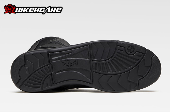 • Đế cao su lưu hóa đảm bảo độ bám cao trên mọi địa hình và giúp chân người mang trụ vững khi di chuyển xe.