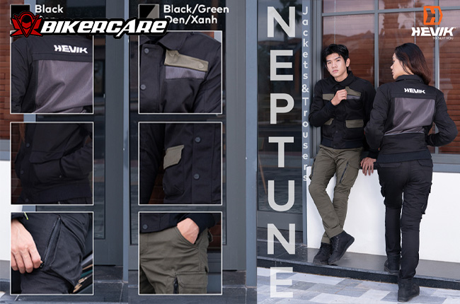 Quần giáp Hevik Neptune được cấu tạo từ chất liệu 60% Cotton, 37% Polyester, 3% spandex, phần lớp lót trong: 60% Polyester, 40% Kevlar.