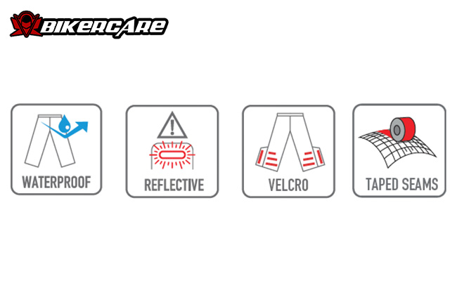 - Tính năng: - Waterproof (chống nước) - Reflective (phản quang) - Velcro adjustable (điều chỉnh đai dán) - Taped seams (đường may ép kín) - Kích thước: S, M, L, XL, 2XL, 3XL