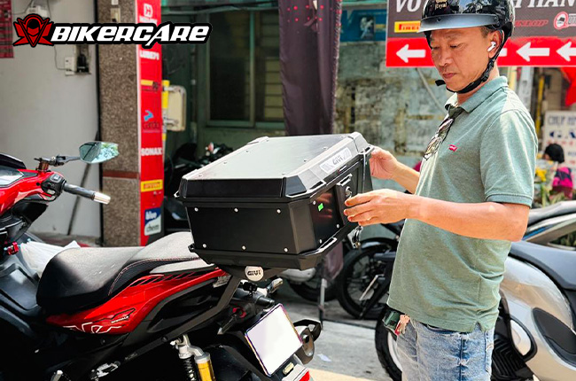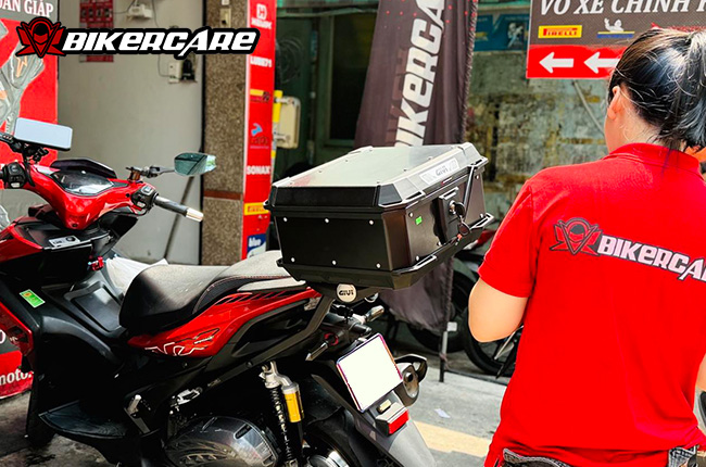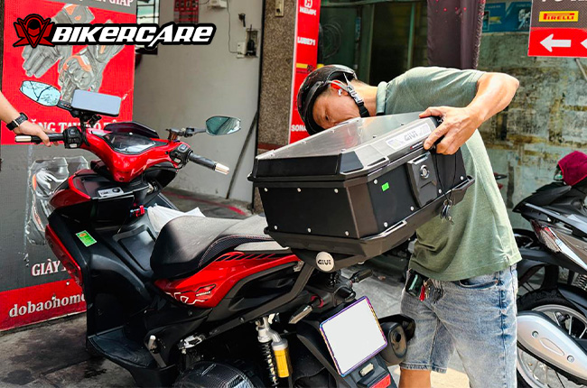 Với kích thước 449 x 390 x 237 mm, thùng được tối ưu hóa để không gây cồng kềnh, tạo cảm giác gọn gàng và không ảnh hưởng đến sự linh hoạt khi di chuyển. Thiết kế của thùng không chỉ tiện dụng mà còn phù hợp với vóc dáng nhỏ gọn của các dòng xe máy phân khối nhỏ và trung.