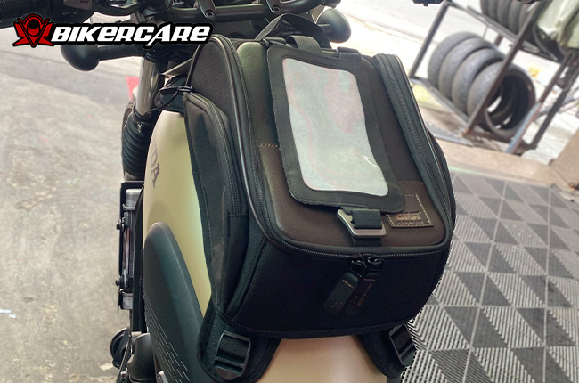 Phía trước túi còn được trang bị 1 ngăn nhỏ để bỏ điện thoại xem đường khi đi tour, phần logo givi được in thẩm mỹ và bắt mắt.